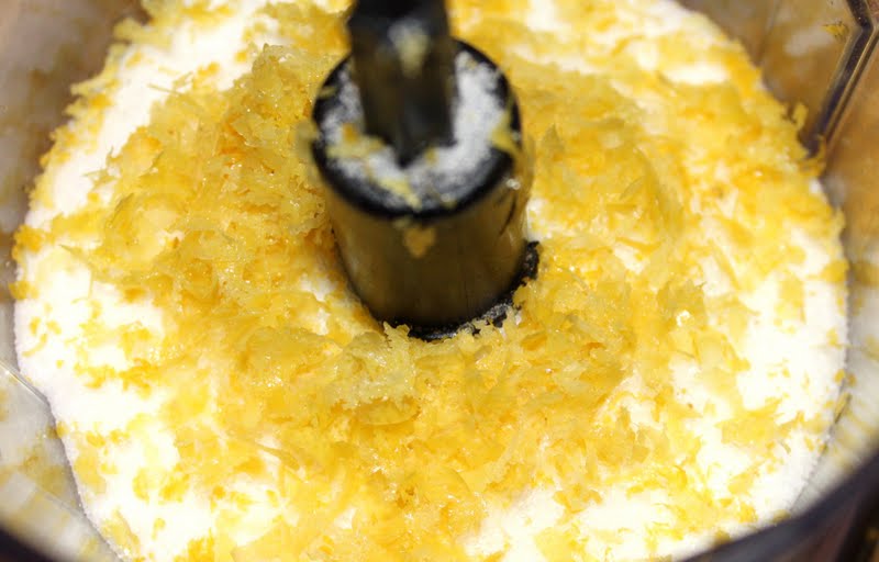 Put one cup of regular granulated sugar and the zest of 2 -3 lemons in a food processor and grind away. You've got yourself some lemony goodness right there!